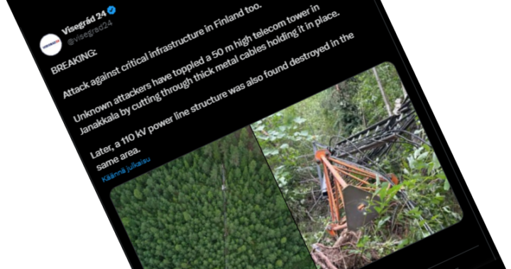 ”Tuntemattomat hyökkääjät ovat kaataneet 50 metriä korkean teletornin Janakkalassa Suomessa”