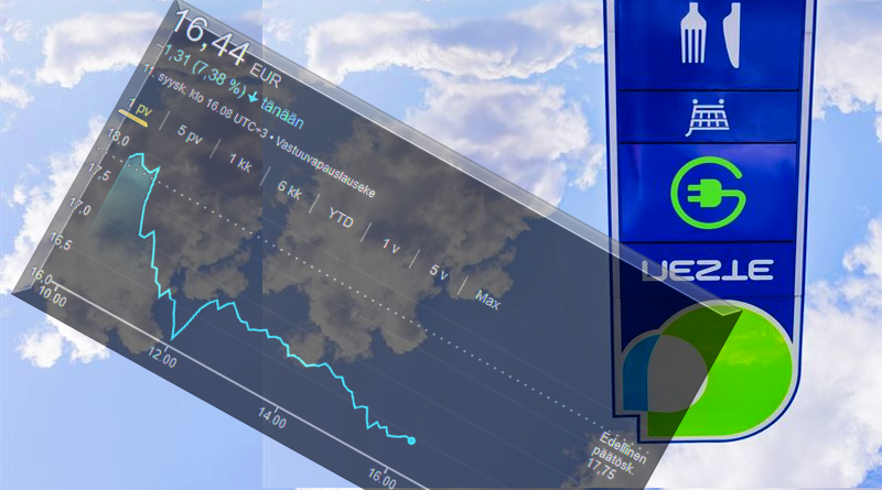 Kenenkähän omistaman Neste OYJ:n pörssikurssi on ollut alavireinen, kuin lehmän häntä, Helsingin pörssissä tänään keskiviikkona. (Otsikkokuvan käppyrä näkyy olevan jotain klo.16 mukainen.) Neste antoi klo. 10:30 tulosvaroituksen, ja siitä se lähti.