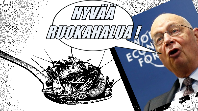 1. ”Nyt Maailman Talousfoorumin neomalthusilainen ihmisiä alistava epätieteeseen perustuva ilmastopolitiikka (6) on vaikuttanut uusiin ravitsemussuosituksiin ja suosituksia ohjaa ilmastonmuutoksen torjunta. Sen verran älliä näillä suomalaisilla ravintotietäjillä oli vielä päässä (7), että he eivät päätyneet suosittamaan hyönteisruokaa Maailman Talousfoorumin suositusten mukaisesti (8), vaan tyytyivät ilmastollisista ja terveydellisistä syistä lähes kieltämään punaisen lihan ja prosessoidun lihatuotteiden syönnin. Tällä tulee olemaan vaikutusta mm. koululaisten, varusmiesten ja vankien ruokailuun.”