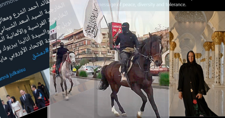 EU:n ministerien tutustumiskäynti Damaskokseen runsas viikko sitten toi julkisuuteen al-Qaeda (HTS) -ministerien islamistisen suhtautumisen suhtautumisen nais-sukupuoleen, jota valtionvaraisministerimme ehti paheksua X-viestissään. (Kuvan aineisto X:stä, eri julkaisuista.) Sitten joku riensi ”faktantarkastamaan”: ”Pepe” 05.01. 2025: Syyrian ulkoministeriö jakaa käsittelemätöntä valokuvaa tilillään, mutta ministeri Purra on saanut jostain naisblurratun version jota paheksuu. Joku ei täsmää. https://x.com/hurumdara2/status/1875965624893263939, Miten niin … Jatka artikkelin ”Faktantarkastajan” erehdys kääntää huomion Syyrian nykyhallinnon jihadismiin lukemista