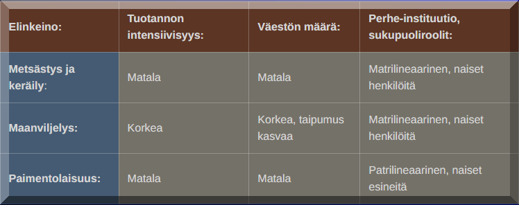 - Väkiluvun väheneminen radikaalisti niillä alueilla maailmassa, jossa oli siirrytty 4000 BC mennessä intensiiviseen tuotantotapaan (maanviljelyyn).