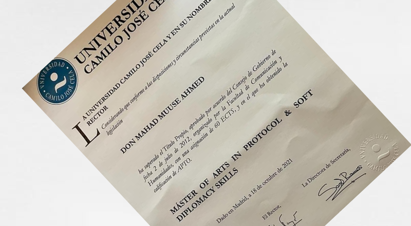 Mahad Ahmedin ammatti on postinlajittelija. Tätä sosiaalisessa mediassa julkaistua tietoa ei vaalitaiston aikana kiistetty. Tästä minulla ei ole ensikäden tietoa. Minun on vaikea uskoa, että hänellä olisi viiden vuoden kokemus diplomatiasta tai viiden vuoden kokemus tapahtumien järjestämisestä?