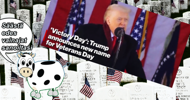 Yhdysvaltain presidentti Donald Trump piti keskiviikkona ’Veterans day’-puheensa Arlingtonin hautausmaalla, -eräällä Yhdysvaltain arvokkaimmista paikoista, jossa lepää myös suomalaisia. ”Today is not only Veterans Day, but it’s my proclamation that we are now going to be saying and calling [it] Victory Day for World War I,” Trump said in a speech at Arlington National Cemetery”. Trump … Jatka artikkelin Trump puhui ’voitonpäivästä’ Arlingtonissa lukemista