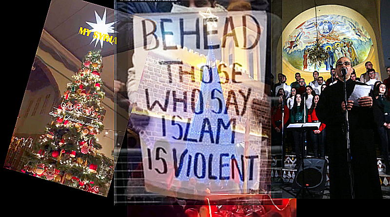 (Kuvaan on käytetty mm. Syrian Arab News Agencyn aineistoa joulunvietosta Syyriassa ajanjaksolla ”ISIS:n” kukistamisesta nykyisen hallituksen valtaan, -ja ”brittiläisen” muslimin -Lontoossa- esittelemää kylttiä, -no, toki ihan vähän editoituna.)