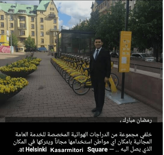 Tässä seuransa valinnut Haydar Qassem poseeraa Helsingin Kasarmitorilla (taustalla tämän kirjoittajalle tuttu rakennus):