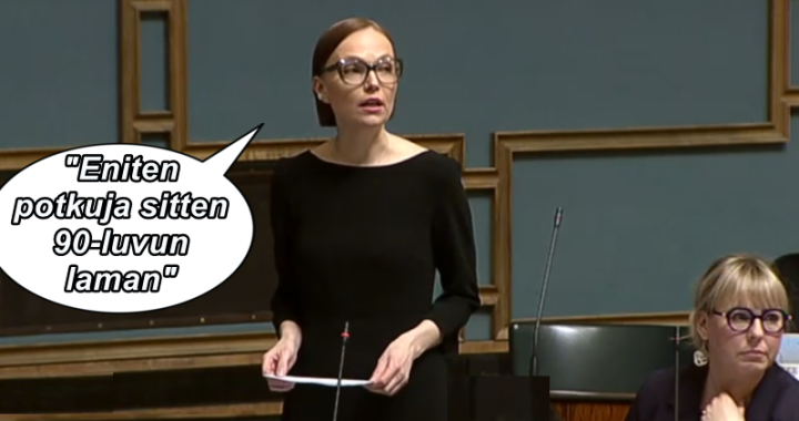 Oppositio ja hallitus pääsivät mittelöön jo kyselytunnin alussa, -ja mikäs meille äänestäjille on antoisampaa! (Kuva: Eduskunta 12.02. 2026, puhumassa Minja Koskela.) ”Mutta johonkin sitä rahaa silti näyttää olevan…” ”Rahaa ei ole”, siteerasi SDP;n Joona Räsänen valtionvarainministeri Riikka Purraa eduskunnan kyselytunnin avanneessa puheenvuorossaan. -Meno olikin jo alusta asti kiinnostavaa, asiapitoista ja joskus värikästäkin. EU:n nopein velkaantuminenkin … Jatka artikkelin ”Miljardin lahja” EK:n suuryrityksille avasi kyselytunnin lukemista