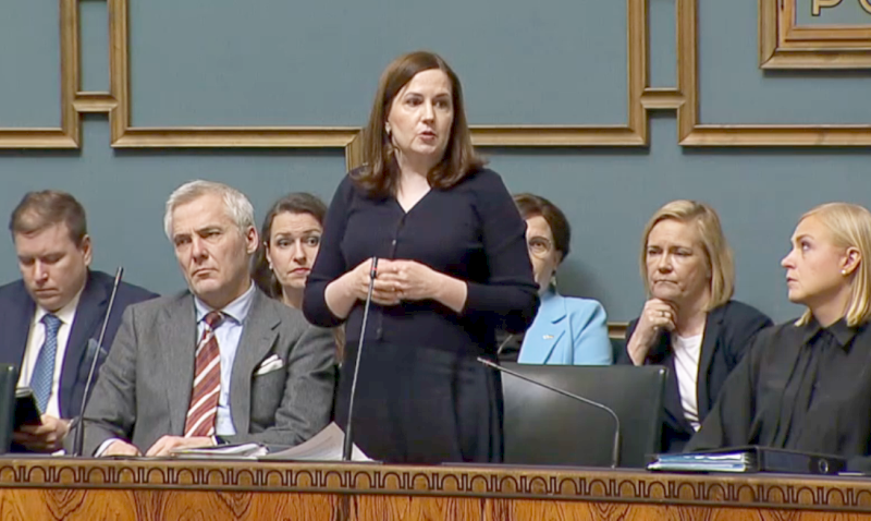 (Kuva: Ministeri Grahn-Laasonen vastaamassa kysymykseen, -kuvalähde: eduskunta.)