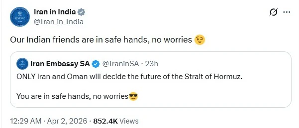 ”Olemme yhteydessä Iraniin selvittääksemme, miten voimme parhaiten varmistaa esteettömän ja turvallisen kauttakulun aluksillemme”, MEA:n tiedottaja Randhir Jaiswal sanoi torstaina (02.04.) lehdistötilaisuudessa. uutistoimisto ANI: n mukaan.