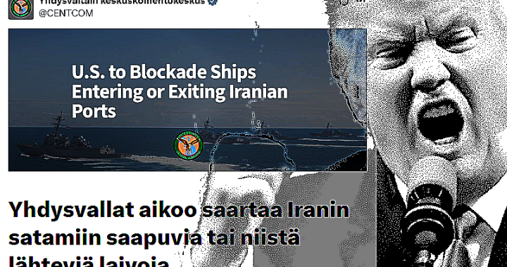 ”Kukaan, joka maksaa laittomia tulleja, ei pääse turvallisesti avomerelle”, Yhdysvaltain presidentti Donald Trump uhosi sunnuntaina (12.04.). Tänään uhkaus on totta. Tarkastelemme. Yhdysvaltojen ja Iranin väliset neuvottelut Pakistanin pääkaupungissa Islamabadissa jäivät tuloksettomiksi, minkä vaikutukset näkyvätkin heti maailmantaloudelle tärkeän Hormuzin salmen liikenteessä. Noin 20% maailmalla käytettävästä raakaöljystä kulkee salmen kautta, -ja merkittävä osa ruokatuotannon tarvitsemista lannoitteista. ”Iran … Jatka artikkelin Hormuz kiinni/auki: Trump uhkailee meriliikennettä lukemista